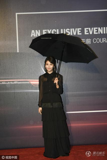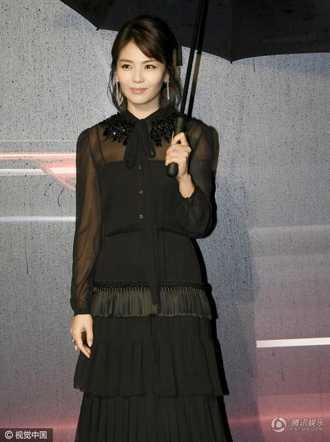 刘涛打伞亮相红毯 黑色套装甜美优雅[5P]